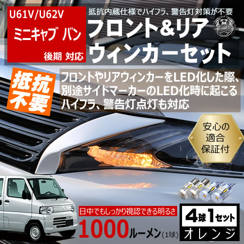 【保証付】デリカ ミニ B35A/B37A/B38A 対応 フロント リア 新型 ウィンカーセット 4本セット SMD24連 明るい 1000ルーメン 適合保証付 抵抗内蔵仕様 配線加工 抵抗器 ICリレー の取付不要! ハイフラ 警告灯対策済 キャンセラー内蔵 エムトラ