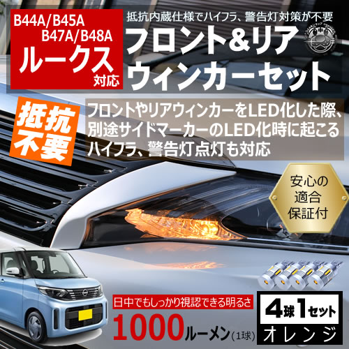【保証付】デイズ ルークス B21A 対応 フロント リア 新型 ウィンカーセット 4本セット SMD24連 明るい 1000ルーメン 適合保証付 抵抗内蔵仕様 配線加工 抵抗器 ICリレー の取付不要! ハイフラ 警告灯対策済 キャンセラー内蔵 エムトラ