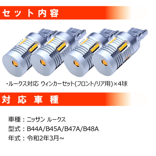【保証付】ルークス ML21S 対応 フロント リア 新型 ウィンカーセット 4本セット SMD24連 明るい 1000ルーメン 適合保証付 抵抗内蔵仕様 配線加工 抵抗器 ICリレー の取付不要! ハイフラ 警告灯対策済 キャンセラー内蔵 エムトラ