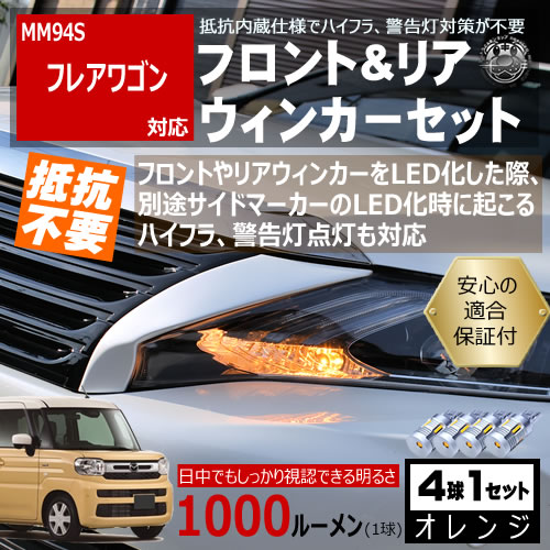 【保証付】ルークス ML21S 対応 フロント リア 新型 ウィンカーセット 4本セット SMD24連 明るい 1000ルーメン 適合保証付 抵抗内蔵仕様 配線加工 抵抗器 ICリレー の取付不要! ハイフラ 警告灯対策済 キャンセラー内蔵 エムトラ