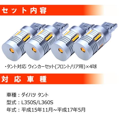 【保証付】シフォン LA600F/LA610F 対応 カスタム除く フロント リア 新型 ウィンカーセット 4本セット SMD24連 明るい 1000ルーメン 適合保証付 抵抗内蔵仕様 配線加工 抵抗器 ICリレー の取付不要! ハイフラ 警告灯対策済 キャンセラー内蔵 エムトラ