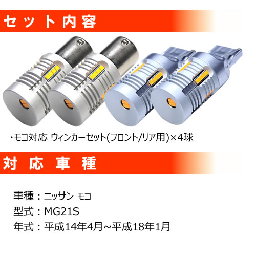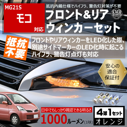 【保証付】モコ MG22S 対応 フロント リア 新型 ウィンカーセット 4本セット SMD24連 明るい 1000ルーメン 適合保証付 抵抗内蔵仕様 配線加工 抵抗器 ICリレー の取付不要! ハイフラ 警告灯対策済 キャンセラー内蔵 エムトラ