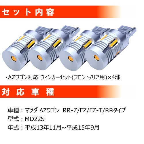 【保証付】モコ MG22S 対応 フロント リア 新型 ウィンカーセット 4本セット SMD24連 明るい 1000ルーメン 適合保証付 抵抗内蔵仕様 配線加工 抵抗器 ICリレー の取付不要! ハイフラ 警告灯対策済 キャンセラー内蔵 エムトラ
