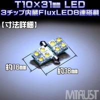 商品名 : T10×31mm LED FLUX 3チップ8連(24連)搭載◎発光カラーは、ホワイト、ブルーから選択可◎ルームランプ等に◎1個価格◎【1ヶ月保証付】【エムトラ】