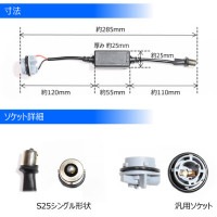 汎用 LED S25 ダブル (BAY15d) 対応 ソケット付き 抵抗内蔵 配線キット★ハイフラ防止や球切れ警告灯対策に★2本セット【エムトラ】