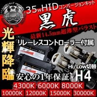 HIDキット 黒虎 H4 シングル 35W 12V対応■4300K・6000K・8000K・10000K・12000K・15000K・30000Kから選択可 最新 薄型 バラスト採用 フィリップス社製石英UVカットガラス採用 ヘッドライトやフォグランプ等に 【自動車用】【エムトラ】